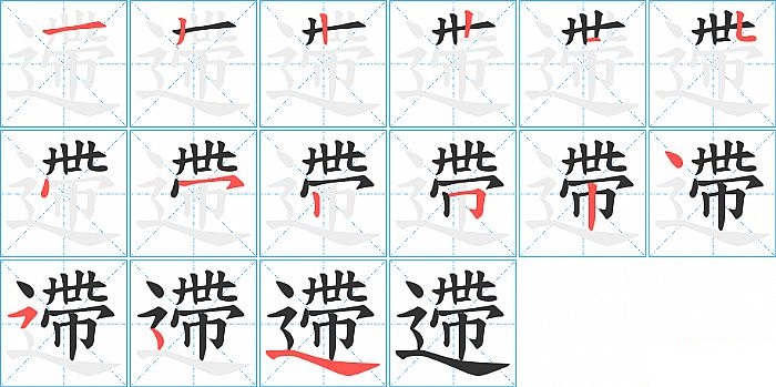 遰是左下包围结构,遰的部首是“辶”,部外笔画11画,总笔画14画,遰的笔画顺序是“横、竖、竖、横、撇、竖弯钩、点、横撇/横钩、竖、横折钩、竖、点、横折折撇、捺”。看看“遰”字什么意思 >>