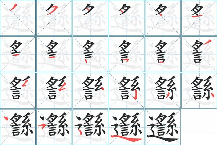 邎是左下包围结构,邎的部首是“辶”,部外笔画18画,总笔画21画,邎的笔画顺序是“撇、横撇/横钩、点、点、点、横、横、横、竖、横折、横、撇、撇折、撇折、点、竖钩、撇、点、点、横折折撇、捺”。看看“邎”字什么意思 >>