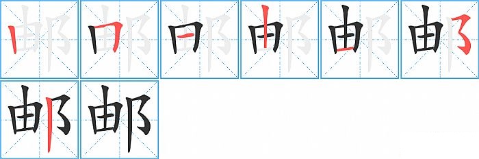 邮是左右结构,邮的部首是“阝”,部外笔画5画,总笔画7画,邮的笔画顺序是“竖、横折、横、竖、横、横折折折钩/横撇弯钩、竖”。看看“邮”字什么意思 >>