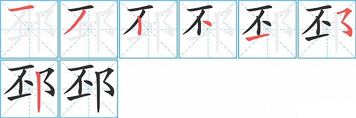 《邳》字的笔顺分步演示图(一笔一画写汉字)