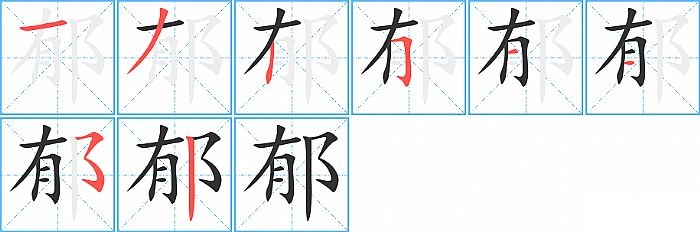 郁是左右结构,郁的部首是“阝”,部外笔画6画,总笔画8画,郁的笔画顺序是“横、撇、竖、横折钩、横、横、横折折折钩/横撇弯钩、竖”。看看“郁”字什么意思 >>