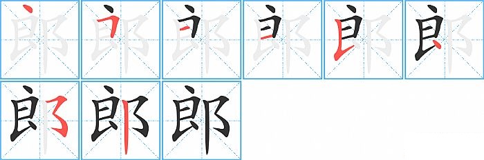 郎是左右结构,郎的部首是“阝”,部外笔画6画,总笔画8画,郎的笔画顺序是“点、横折、横、横、竖提、点、横折折折钩/横撇弯钩、竖”。看看“郎”字什么意思 >>