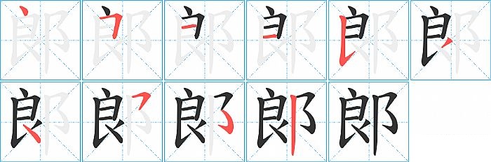郞是左右结构,郞的部首是“阝”,部外笔画7画,总笔画9画,郞的笔画顺序是“点、横折、横、横、竖提、撇、点、横折折折钩/横撇弯钩、竖”。看看“郞”字什么意思 >>