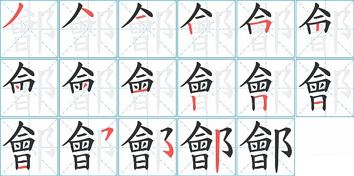 鄶是左右结构,鄶的部首是“阝”,部外笔画13画,总笔画15画,鄶的笔画顺序是“撇、点、横、竖、横折、竖、点、撇、横、竖、横折、横、横、横折折折钩/横撇弯钩、竖”。看看“鄶”字什么意思 >>
