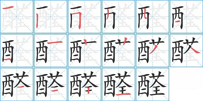 醛是左右结构,醛的部首是“酉”,部外笔画9画,总笔画16画,醛的笔画顺序是“横、竖、横折、撇、竖折/竖弯、横、横、横、竖、竖、撇、捺、横、横、竖、横”。看看“醛”字什么意思 >>