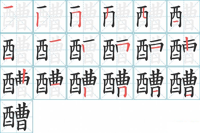 醩是左右结构,醩的部首是“酉”,部外笔画11画,总笔画18画,醩的笔画顺序是“横、竖、横折、撇、竖折/竖弯、横、横、横、竖、横折、横、竖、竖、横、竖、横折、横、横”。看看“醩”字什么意思 >>