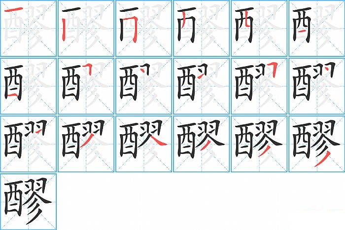 醪是左右结构,醪的部首是“酉”,部外笔画11画,总笔画18画,醪的笔画顺序是“横、竖、横折、撇、竖折/竖弯、横、横、横折、点、提、横折、点、提、撇、捺、撇、撇、撇”。看看“醪”字什么意思 >>