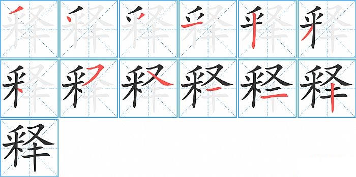 释是左右结构,释的部首是“采”,部外笔画5画,总笔画12画,释的笔画顺序是“撇、点、撇、横、竖、撇、点、横撇/横钩、捺、横、横、竖”。看看“释”字什么意思 >>
