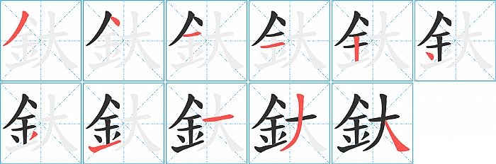 《釱》字的笔顺分步演示图(一笔一画写汉字)