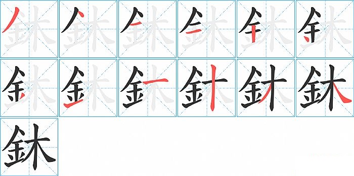 鈢是左右结构,鈢的部首是“釒”,部外笔画4画,总笔画12画,鈢的笔画顺序是“撇、点、横、横、竖、点、撇、提、横、竖、撇、捺”。看看“鈢”字什么意思 >>