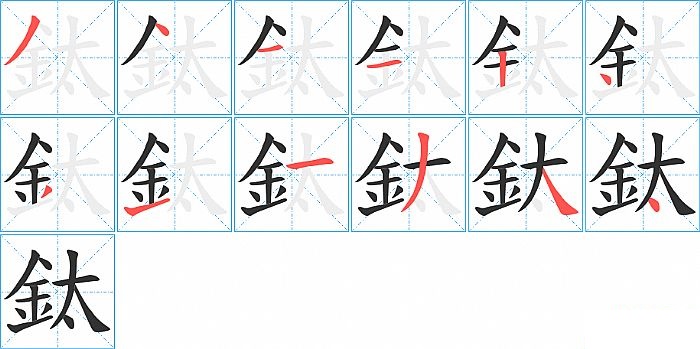 鈦是左右结构,鈦的部首是“釒”,部外笔画4画,总笔画12画,鈦的笔画顺序是“撇、点、横、横、竖、点、撇、提、横、撇、捺、点”。看看“鈦”字什么意思 >>