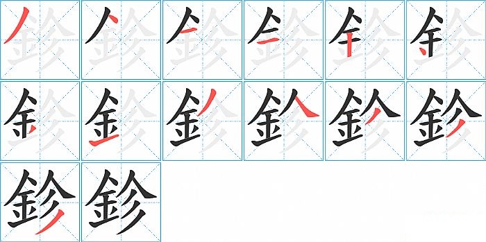 鉁是左右结构,鉁的部首是“釒”,部外笔画5画,总笔画13画,鉁的笔画顺序是“撇、点、横、横、竖、点、撇、提、撇、捺、撇、撇、撇”。看看“鉁”字什么意思 >>