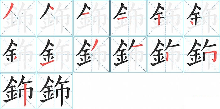 鉓是左右结构,鉓的部首是“釒”,部外笔画5画,总笔画13画,鉓的笔画顺序是“撇、点、横、横、竖、点、撇、提、撇、横、竖、横折钩、竖”。看看“鉓”字什么意思 >>