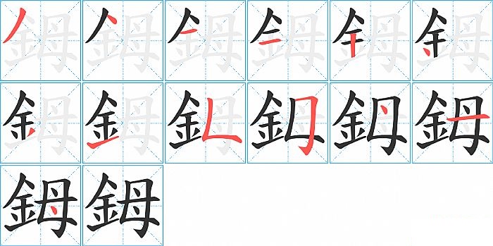 鉧是左右结构,鉧的部首是“釒”,部外笔画5画,总笔画13画,鉧的笔画顺序是“撇、点、横、横、竖、点、撇、提、竖折/竖弯、横折钩、点、横、点”。看看“鉧”字什么意思 >>