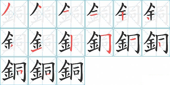 銅是左右结构,銅的部首是“釒”,部外笔画6画,总笔画14画,銅的笔画顺序是“撇、点、横、横、竖、点、撇、提、竖、横折钩、横、竖、横折、横”。看看“銅”字什么意思 >>