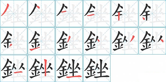 銼是左右结构,銼的部首是“釒”,部外笔画7画,总笔画15画,銼的笔画顺序是“撇、点、横、横、竖、点、撇、提、撇、点、撇、点、横、竖、横”。看看“銼”字什么意思 >>