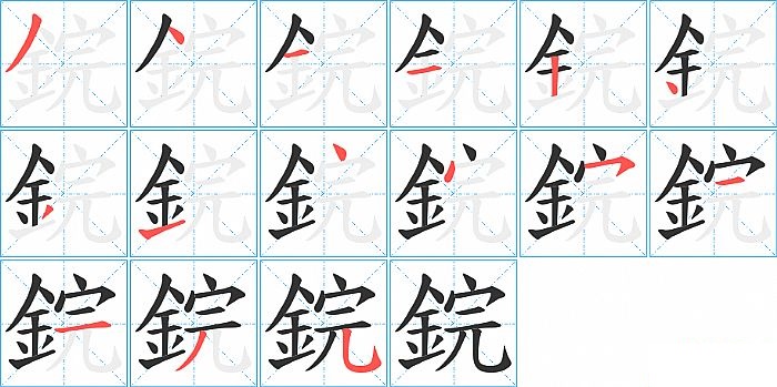 鋎是左右结构,鋎的部首是“釒”,部外笔画7画,总笔画15画,鋎的笔画顺序是“撇、点、横、横、竖、点、撇、提、点、点、横撇/横钩、横、横、撇、竖弯钩”。看看“鋎”字什么意思 >>