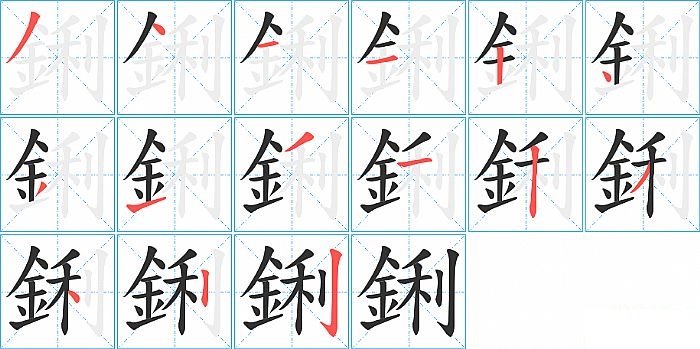 鋓是左右结构,鋓的部首是“釒”,部外笔画7画,总笔画15画,鋓的笔画顺序是“撇、点、横、横、竖、点、撇、提、撇、横、竖、撇、点、竖、竖钩”。看看“鋓”字什么意思 >>