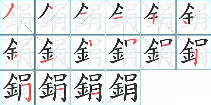 鋗是左右结构,鋗的部首是“釒”,部外笔画7画,总笔画15画,鋗的笔画顺序是“撇、点、横、横、竖、点、撇、提、竖、横折、横、竖、横折钩、横、横”。看看“鋗”字什么意思 >>