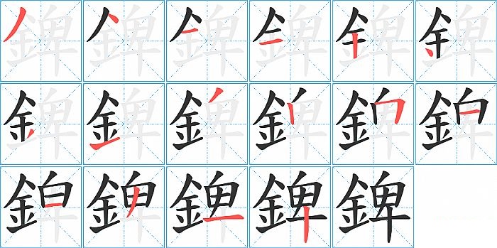 錍是左右结构,錍的部首是“釒”,部外笔画8画,总笔画16画,錍的笔画顺序是“撇、点、横、横、竖、点、撇、提、撇、竖、横折、横、横、撇、横、竖”。看看“錍”字什么意思 >>