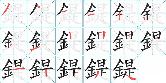 鍉是左右结构,鍉的部首是“釒”,部外笔画9画,总笔画17画,鍉的笔画顺序是“撇、点、横、横、竖、点、撇、提、竖、横折、横、横、横、竖、横、撇、捺”。看看“鍉”字什么意思 >>