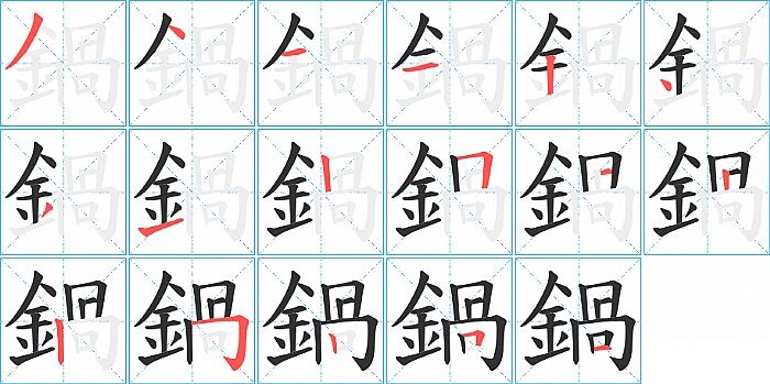鍋是左右结构,鍋的部首是“釒”,部外笔画8画,总笔画16画,鍋的笔画顺序是“撇、点、横、横、竖、点、撇、提、竖、横折、横折、竖、横折钩、竖、横折、横”。看看“鍋”字什么意思 >>