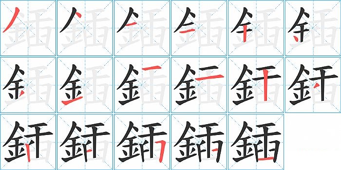 鍤是左右结构,鍤的部首是“釒”,部外笔画9画,总笔画17画,鍤的笔画顺序是“撇、点、横、横、竖、点、撇、提、撇、横、竖、撇、竖、横、横折、横、横”。看看“鍤”字什么意思 >>