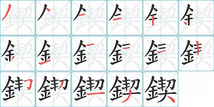 鍥是左右结构,鍥的部首是“釒”,部外笔画9画,总笔画17画,鍥的笔画顺序是“撇、点、横、横、竖、点、撇、提、横、横、横、竖、横折钩、撇、横、撇、捺”。看看“鍥”字什么意思 >>