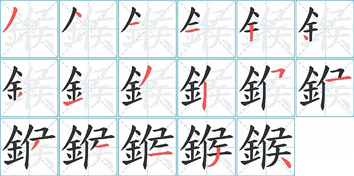 鍭是左右结构,鍭的部首是“釒”,部外笔画9画,总笔画17画,鍭的笔画顺序是“撇、点、横、横、竖、点、撇、提、撇、竖、横折、横、撇、横、横、撇、捺”。看看“鍭”字什么意思 >>