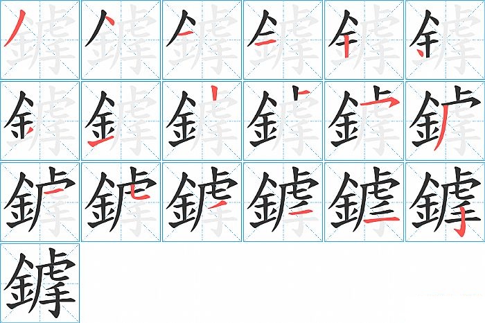 鎼是左右结构,鎼的部首是“釒”,部外笔画10画,总笔画18画,鎼的笔画顺序是“撇、点、横、横、竖、点、撇、提、竖、横、横撇/横钩、撇、横、竖弯钩、撇、横、横、竖钩”。看看“鎼”字什么意思 >>