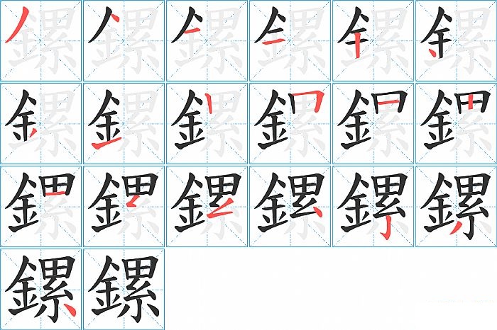 鏍是左右结构,鏍的部首是“釒”,部外笔画11画,总笔画19画,鏍的笔画顺序是“撇、点、横、横、竖、点、撇、提、竖、横折、横、竖、横、撇折、撇折、点、竖钩、撇、点”。看看“鏍”字什么意思 >>