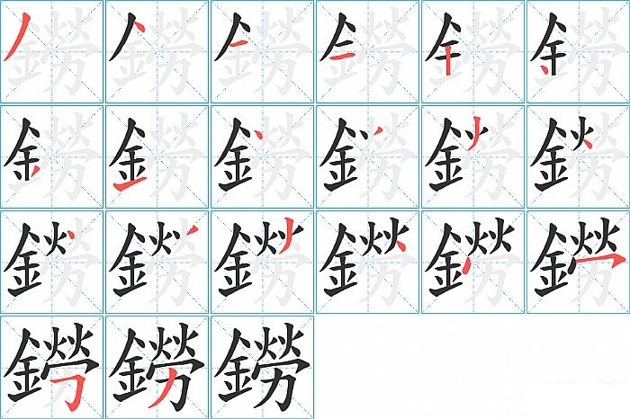 鐒是左右结构,鐒的部首是“釒”,部外笔画12画,总笔画20画,鐒的笔画顺序是“撇、点、横、横、竖、点、撇、提、点、撇、撇、点、点、撇、撇、点、点、横撇/横钩、横折钩、撇”。看看“鐒”字什么意思 >>
