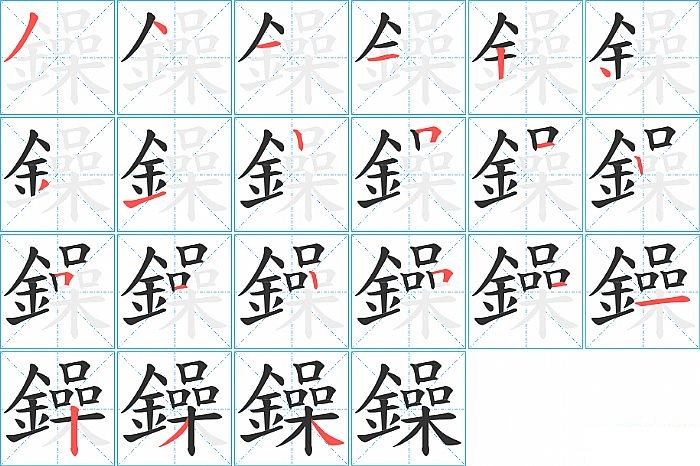 鐰是左右结构,鐰的部首是“釒”,部外笔画13画,总笔画21画,鐰的笔画顺序是“撇、点、横、横、竖、点、撇、提、竖、横折、横、竖、横折、横、竖、横折、横、横、竖、撇、捺”。看看“鐰”字什么意思 >>