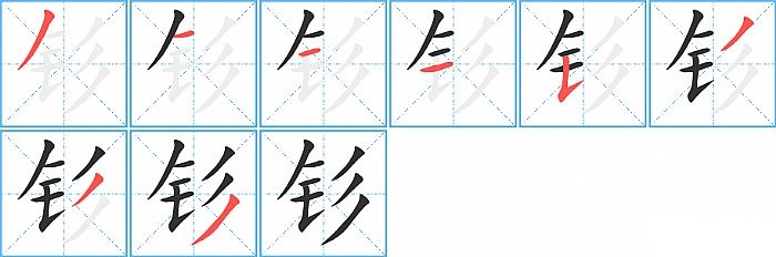 《钐》字的笔顺分步演示图(一笔一画写汉字)