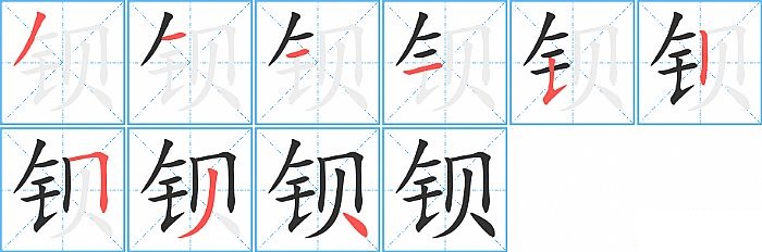 《钡》字的笔顺分步演示图(一笔一画写汉字)