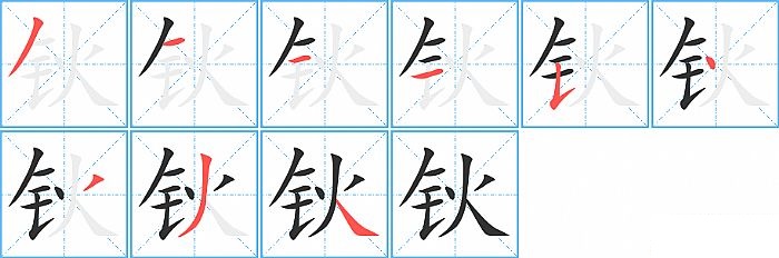 《钬》字的笔顺分步演示图(一笔一画写汉字)
