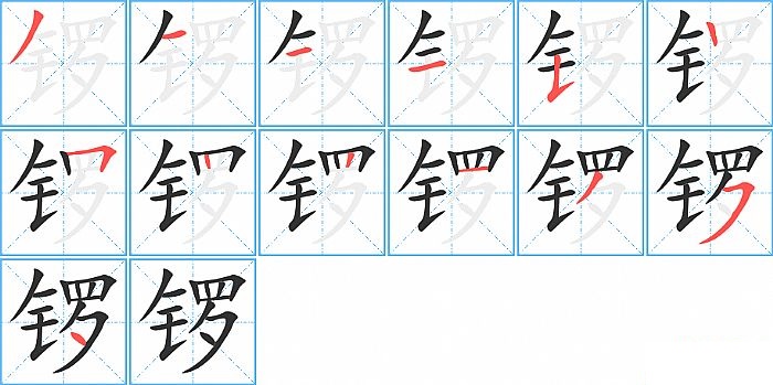 锣是左右结构,锣的部首是“钅”,部外笔画8画,总笔画13画,锣的笔画顺序是“撇、横、横、横、竖提、竖、横折、竖、竖、横、撇、横撇/横钩、点”。看看“锣”字什么意思 >>
