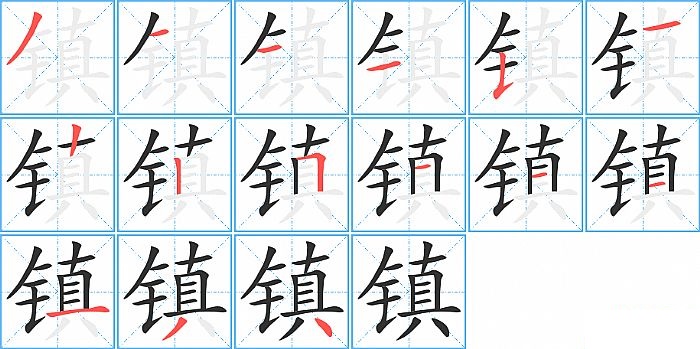 镇是左右结构,镇的部首是“钅”,部外笔画10画,总笔画15画,镇的笔画顺序是“撇、横、横、横、竖提、横、竖、竖、横折、横、横、横、横、撇、点”。看看“镇”字什么意思 >>