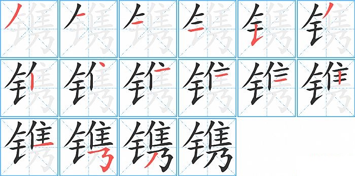 镌是左右结构,镌的部首是“钅”,部外笔画10画,总笔画15画,镌的笔画顺序是“撇、横、横、横、竖提、撇、竖、点、横、横、横、竖、横、横折折折钩/横撇弯钩、撇”。看看“镌”字什么意思 >>