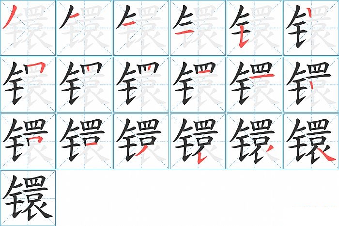 镮是左右结构,镮的部首是“钅”,部外笔画13画,总笔画18画,镮的笔画顺序是“撇、横、横、横、竖提、竖、横折、竖、竖、横、横、竖、横折、横、撇、竖提、撇、捺”。看看“镮”字什么意思 >>