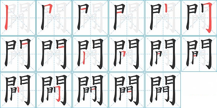 闁是上包围结构,闁的部首是“門”,部外笔画8画,总笔画16画,闁的笔画顺序是“横折、横、横、竖、竖、横折钩、横、横、横折、横、横、竖、竖、横折钩、横、横”。看看“闁”字什么意思 >>