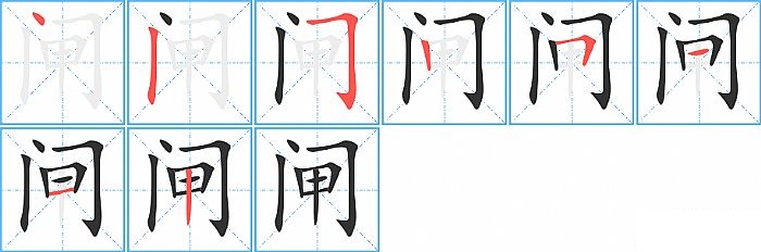 《闸》字的笔顺分步演示图(一笔一画写汉字)