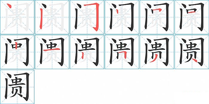 阓是上包围结构,阓的部首是“门”,部外笔画9画,总笔画12画,阓的笔画顺序是“点、竖、横折钩、竖、横折、横、竖、横、竖、横折、撇、点”。看看“阓”字什么意思 >>
