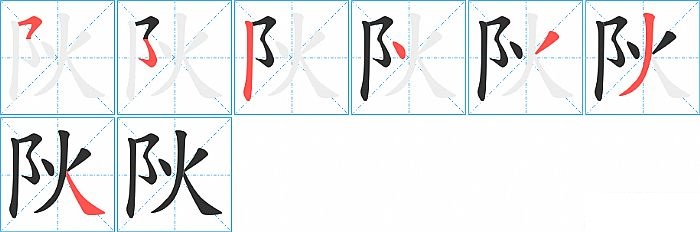阦是左右结构,阦的部首是“阝”,部外笔画4画,总笔画6画,阦的笔画顺序是“横折折折钩/横撇弯钩、竖、点、撇、撇、捺”。