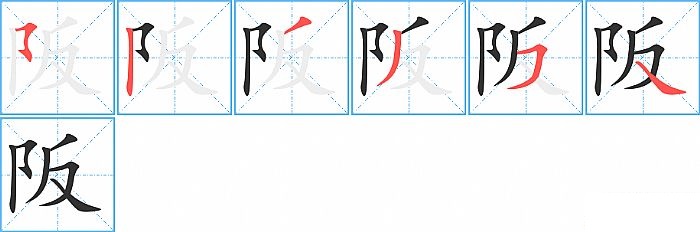 阪是左右结构,阪的部首是“阝”,部外笔画4画,总笔画6画,阪的笔画顺序是“横折折折钩/横撇弯钩、竖、撇、撇、横撇/横钩、捺”。看看“阪”字什么意思 >>
