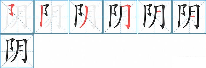 《阴》字的笔顺分步演示图(一笔一画写汉字)