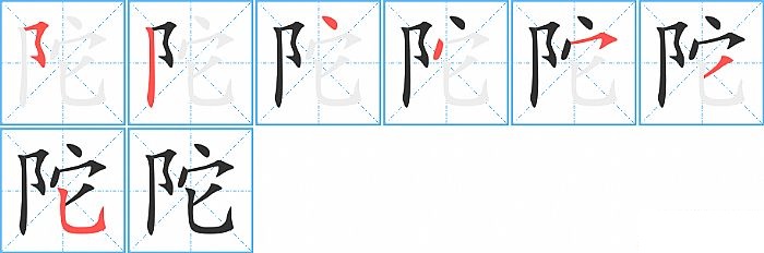陀是左右结构,陀的部首是“阝”,部外笔画5画,总笔画7画,陀的笔画顺序是“横折折折钩/横撇弯钩、竖、点、点、横撇/横钩、撇、竖弯钩”。看看“陀”字什么意思 >>