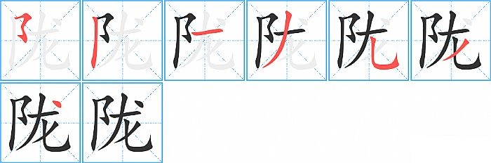 陇是左右结构,陇的部首是“阝”,部外笔画5画,总笔画7画,陇的笔画顺序是“横折折折钩/横撇弯钩、竖、横、撇、竖弯钩、撇、点”。看看“陇”字什么意思 >>