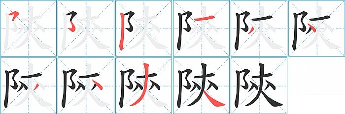 陝是左右结构,陝的部首是“阝”,部外笔画7画,总笔画9画,陝的笔画顺序是“横折折折钩/横撇弯钩、竖、横、撇、点、撇、点、撇、捺”。看看“陝”字什么意思 >>