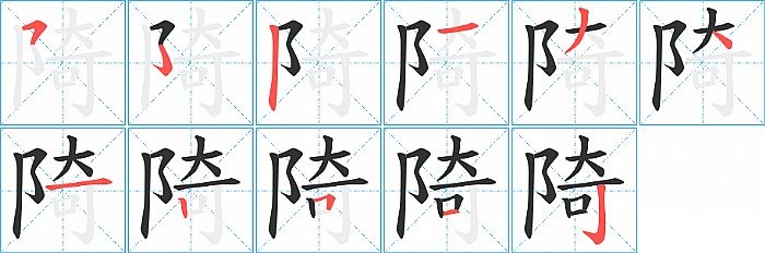陭是左右结构,陭的部首是“阝”,部外笔画8画,总笔画10画,陭的笔画顺序是“横折折折钩/横撇弯钩、竖、横、撇、点、横、竖、横折、横、竖钩”。看看“陭”字什么意思 >>